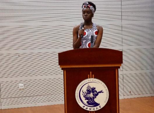 典礼伊始,李春玲院长首先致辞。她肯定了预科生一年来在学习方面的进步,并对全体预科教师、辅导员和教务老师的辛勤付出表示了感谢。她接着表示,留学生是连接中国与世界的桥梁,预科生的求知热情、跨文化沟通能力和开放包容的心态特别珍贵,希望大家以后能做中外文化交流的使者,为人类命运共同体建设做出贡献。同时,她向同学们提出了三点希望,一、永葆学习热情,勇攀知识高峰;二、深化文化理解,促进交流融合;三、锤炼品德修养,担当时代责任。最后,她祝愿同学们未来在各自专业领域绽放更加夺目的光彩。
