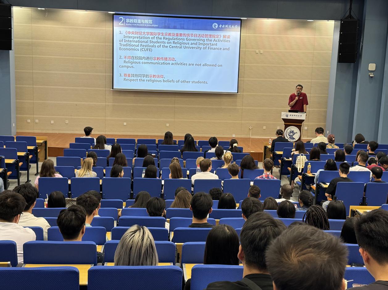为帮助国际新生快速适应校园生活、夯实入学基础,学院精心设计并系统开展了“全维度适配”新生的入学教育系列活动,内容紧密围绕国际学生的成长需求,兼顾“实用性”与“关怀度”。教育环节既涵盖中国法律法规、出入境签证政策、宗教信仰规范等“必知必备”内容,帮助新生明确在华学习生活的基本准则;也包含校纪校规解读、学术诚信教育、跨文化沟通技巧培训等核心课程,助力新生提前了解学术要求、融入校园文化;同时,学院特别增设心理健康辅导、校园安全防护等“人文关怀模块”,全方位守护新生的身心安全。