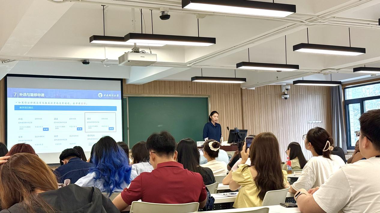 值得一提的是,学院还邀请了专业人士现场授课:北京市公安局海淀分局出入境管理大队民警朱冠华结合真实案例,生动解读签证延期、居留许可办理、证件遗失处理等关键流程,手把手指导新生填写相关材料;学校保卫处保卫干部王其学老师以“校园安全场景模拟”的形式传授消防安全、人身安全、财产安全等实用知识;学校教务处兰雅慧老师、研究生院刘秀娟老师则分别围绕“本科课程选修体系与学分要求”“研究生学术规范与论文写作技巧”开展专项指导,为新生的学业规划提供清晰指引。