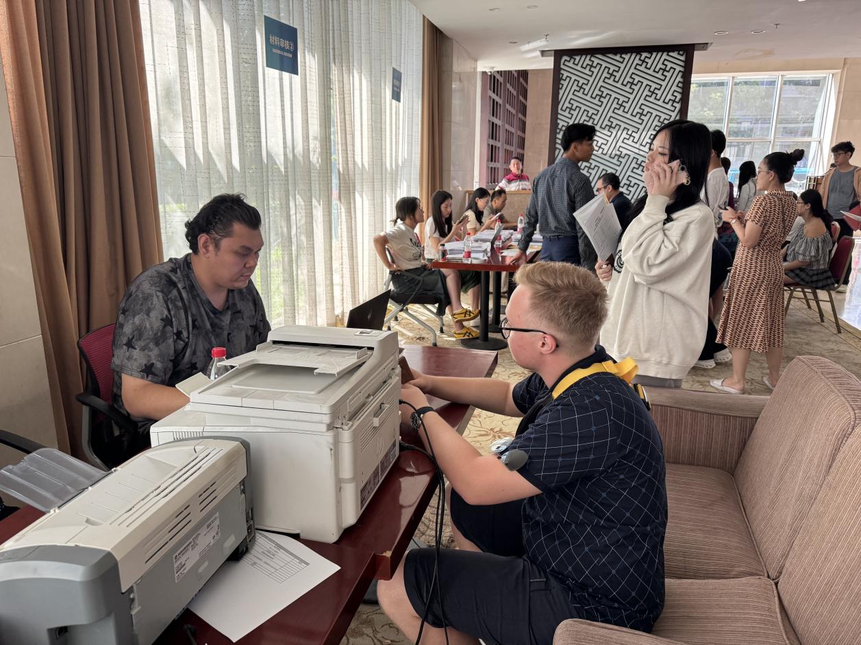 在本次迎新工作中,由40余名中外学生组成的“国际学生迎新志愿者团队”成为校园里一道亮眼的风景线。这支队伍中,既有来自中国的学生志愿者,也有来自12个国家的国际学长学姐,他们凭借“过来人”的经验,主动承担起机场接站、校园引导、行李搬运、信息咨询等关键岗位的工作。在机场接站点,志愿者们举着写有新生姓名的双语牌子,早早等候在出口;校园里,他们耐心地为新生指引报到流程、介绍教学楼与食堂位置;面对语言沟通有困难的新生,国际学长学姐们熟练切换“母语+中文”双语言模式,细致解答签证办理、宿舍入住等疑问,用“经验+耐心”的双维服务,为新生搭建起跨越文化与语言的“沟通桥梁”,让新生们在抵达之初便感受到满满的善意。