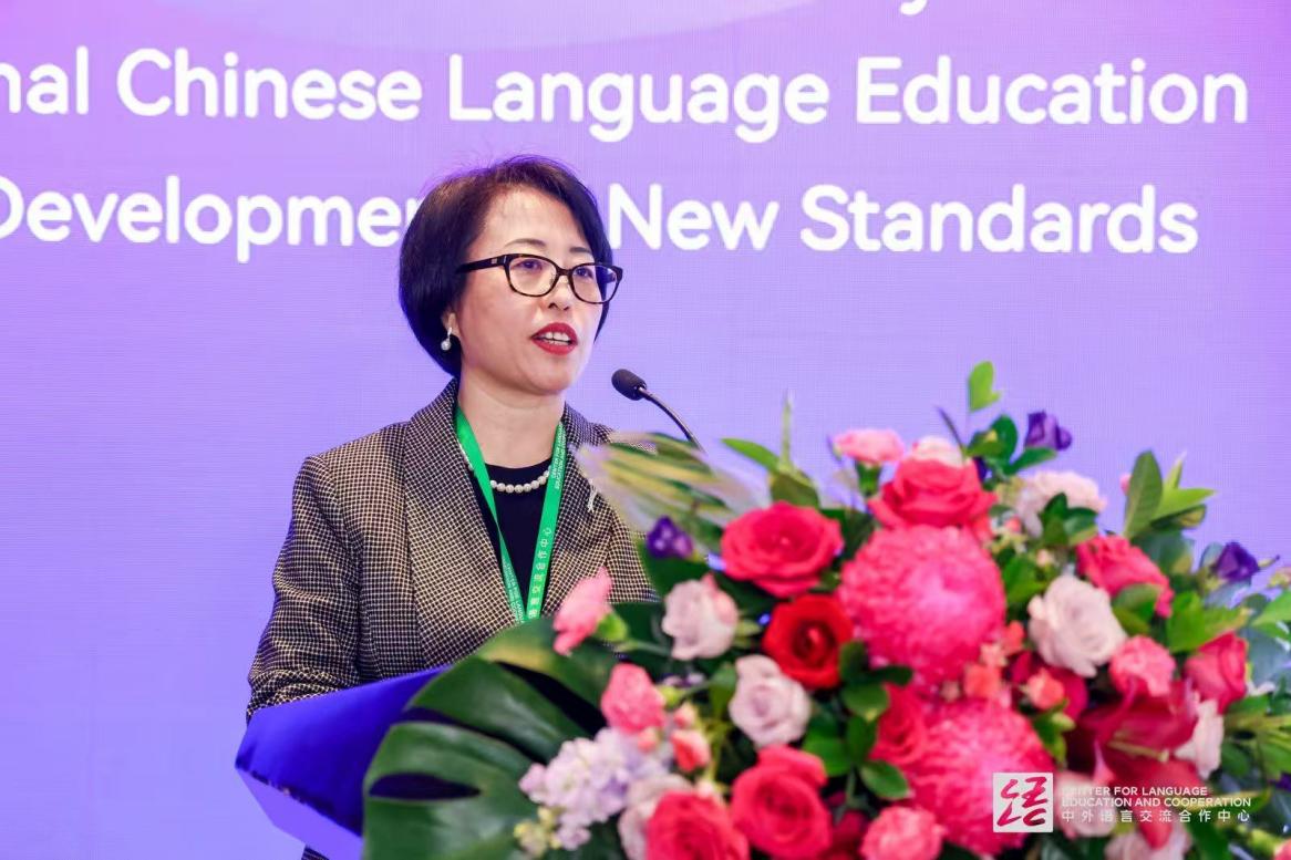 在阐述标准体系架构时,她重点介绍了《国际中文教育中文水平等级标准》(以下简称《标准》)的核心意义,并系统阐释了其“一体多翼”的构建模式。她指出,该体系致力于构建一个覆盖教、学、测、评、研、管、服等环节的完整生态系统。其中,“一体”以《等级标准》为基石,是新HSK考试改革的基本依据;“多翼”则是围绕《标准》衍生出的系列配套标准,涵盖教师、教学与课程、专门用途中文、教学资源及测评评估等多个类别,共同构成有机整体。