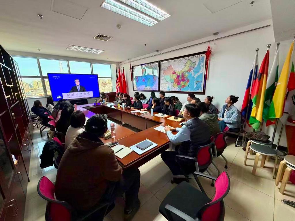 会上,与会师生还集中学习了习近平主席复信青年汉学家重要回信精神以及丁薛祥副总理在2025世界中文大会开幕式上的主旨讲话。李春玲指出,学院师生要坚持守正创新,搭建语言互通、理解互信、文明互鉴之桥,讲好真实立体全面的中国故事、传播中华优秀传统文化与当代文明成果,为推动不同文明平等对话、促进世界各国文明互学互鉴、助力构建人类命运共同体注入坚实动能。