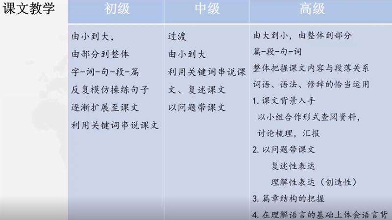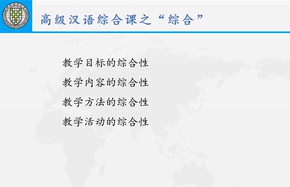 本次培训共分为汉语教学的阶段性和系统性、高级汉语综合课的课程性质与目标、高级汉语综合课之“综合”、高级汉语综合课的教学步骤四个部分。