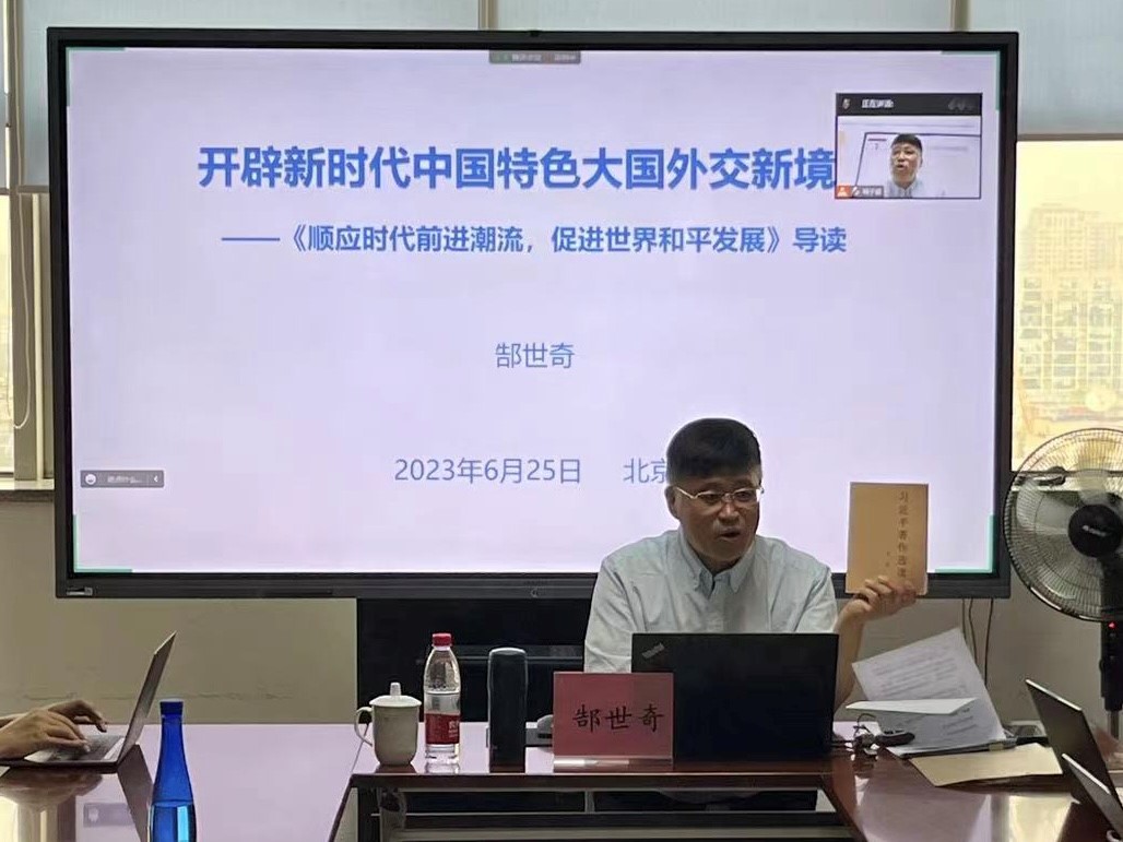 2023年6月25日9时,北京联合大学郜世奇教授在我院成功开展了“顺应时代前进潮流 促进世界和平发展——国家主席习近平在莫斯科国际关系学院的演讲导读”专题讲座。本次讲座以线上线下相结合的方式举行,由伟德国际1946bv陈香副院长主持。我院汉语国际教育专业硕士生导师、2022级汉语国际教育专业全体研究生,2023级汉语国际教育专业硕士新生参加了本次讲座。