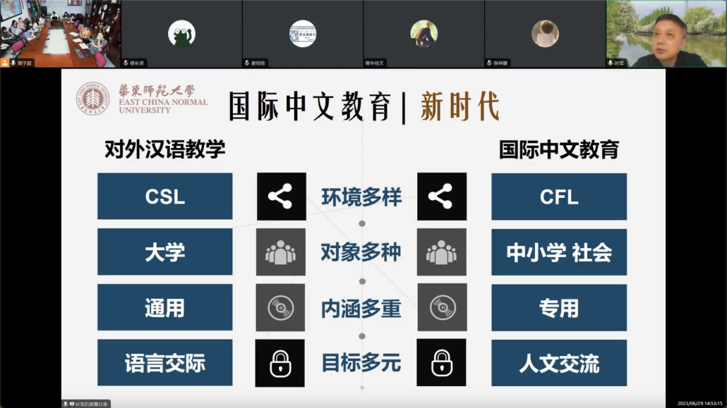 2023年6月29日下午,华东师范大学叶军教授在我院成功举办了“国际中文教育:新时代、新观念、新方法”专题线上讲座。该场讲座在腾讯会议平台上举行,由伟德国际1946bv副院长陈香副教授主持。我院汉语国际教育硕士生导师以及2022级、2023级汉语国际教育硕士专业学位研究生参加了此次讲座。