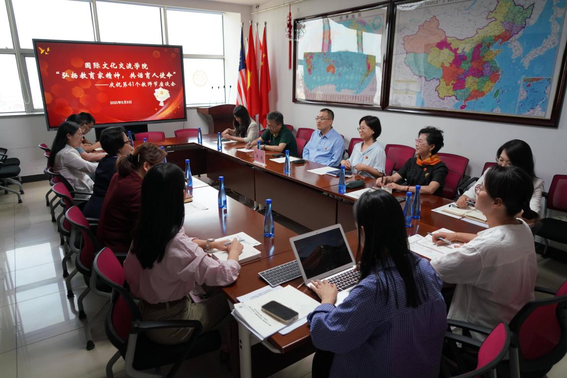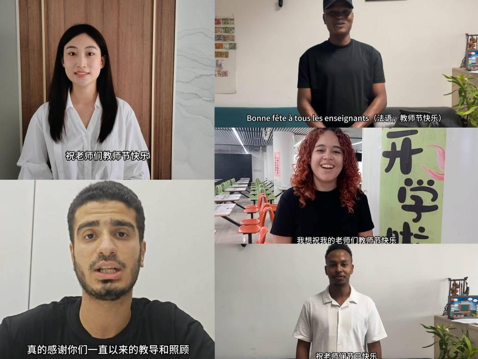 会上教师们还观看了中外学生代表录制的教师节祝福视频。来自不同国家的新老生代表向辛勤付出的教师们表达节日祝福,温馨的节日氛围萦绕全场。