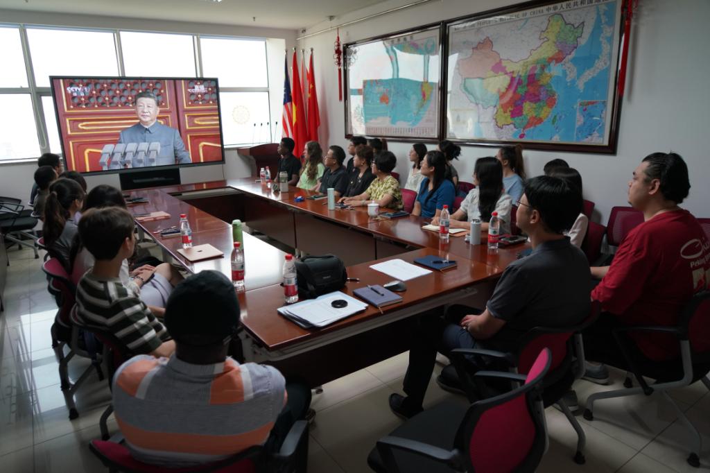 中国学生刘丹表示:“习近平总书记的重要讲话让我内心澎湃,纪念大会让我感受到了我国军队现代化建设所取得的辉煌成就,国防科技的发展使我深受震撼,身为一名中国人,我感到无比自豪。当五星红旗在国歌声中冉冉升起,我不禁热泪盈眶。因为我深知和平来之不易,我们今天的幸福生活是无数先辈抛头颅、洒热血换来的,我们应当珍惜。同时,作为一名国际中文教育专业的研究生,我也更加坚定了自己的理想信念,我一定会努力提升自己的专业能力,用中文架起中外文化交流的桥梁,为中华民族伟大复兴和人类和平发展贡献自己的一份力量。”