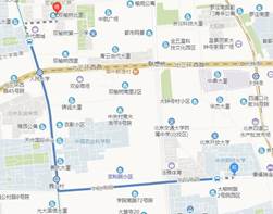 乘车路线:学校南门乘坐特15路公交车到人民大学站下车,向东北步行500米。