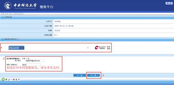如需发票,请填写发票信息后,单击“下一步”。(电子发票一般3天左右发至你填写的邮箱)