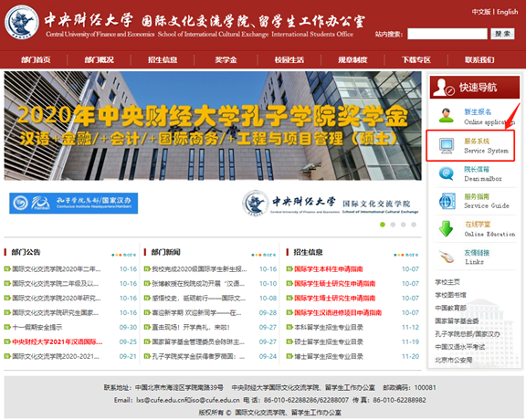 Openthe website of the School of International Cultural Exchange/InternationalStudents Office (http:/) and clickService System