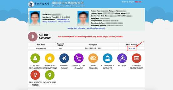 Openthe website of the School of International Cultural Exchange InternationalStudents Office (http:/) and clickService System