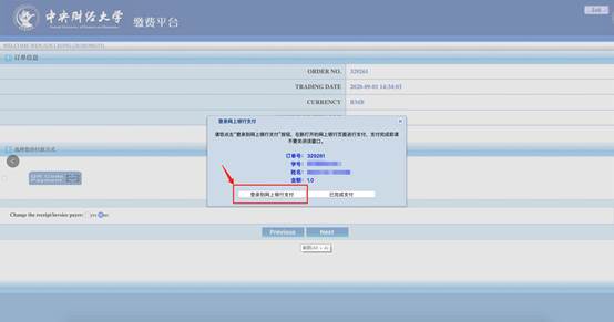 6.2如选择“首信易支付(外卡支付)”,请单击“登录到网上银行付款”。