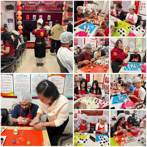 在美食交流环节,烹饪老师先结合中秋传说向留学生们生动地讲解了“中秋吃月饼”的文化内涵,随后还为同学们演示了冰皮月饼的制作步骤。留学生们跃跃欲试,跟着老师的步骤一步步操作,成功做出了造型精致的冰皮月饼。