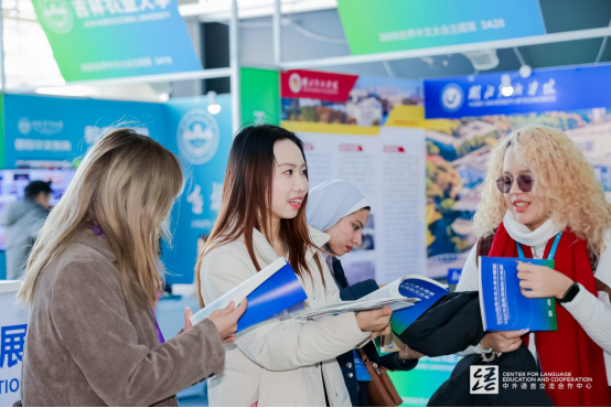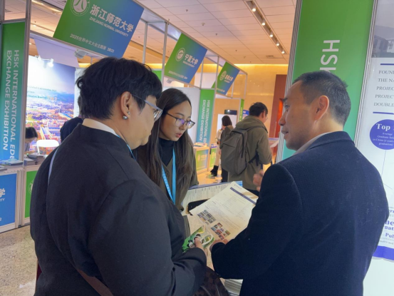 会议期间,学生们积极参与“中外青年中文对话”“HSK 新版教程体验”等特色环节,沉浸式感受中文教育前沿动态,同时在“中文数字资源展”体验“HSK GO”等创新工具,与工作人员交流咨询。学院留学生招生办的特色展位成为热门打卡点,工作人员现场发放多语种宣传资料,解答入学申请等相关问题。