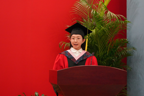 范氏美幸作为国际毕业生代表发言。她表示,毕业不是终点,而是新的起点。愿毕业生们带着母校的期望和嘱托,继续努力,提升自我;运用所学,成为联接中外文化的桥梁和纽带,为推动世界的发展贡献智慧和力量。