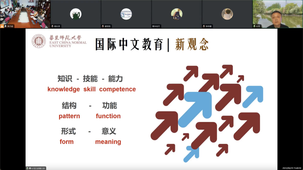 2023年6月29日下午,华东师范大学叶军教授在我院成功举办了“国际中文教育:新时代、新观念、新方法”专题线上讲座。该场讲座在腾讯会议平台上举行,由伟德国际1946bv副院长陈香副教授主持。我院汉语国际教育硕士生导师以及2022级、2023级汉语国际教育硕士专业学位研究生参加了此次讲座。