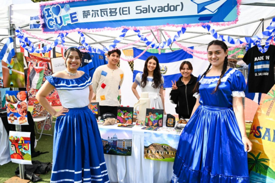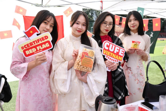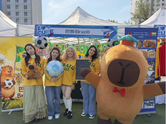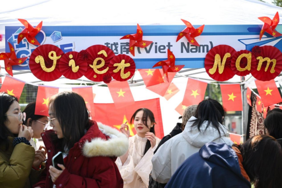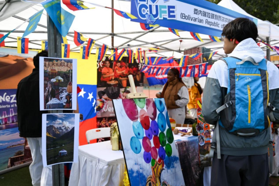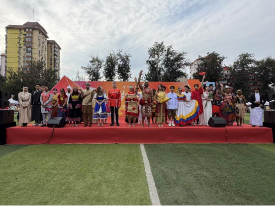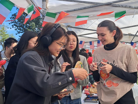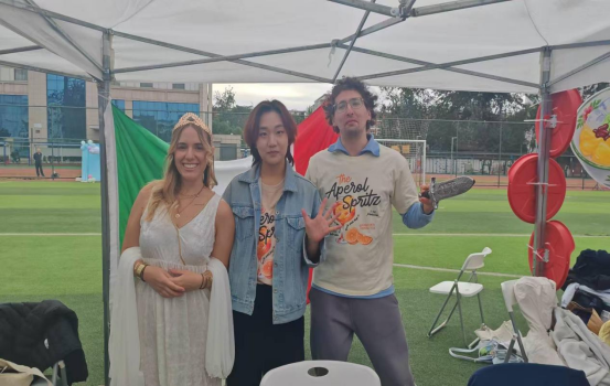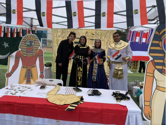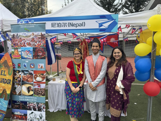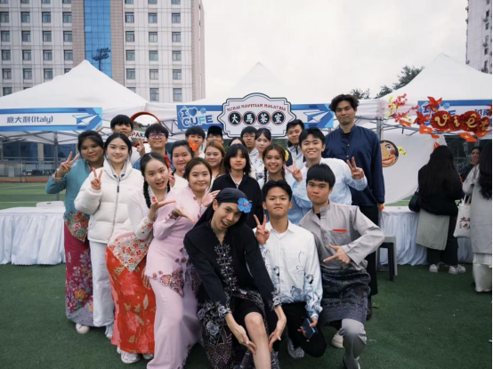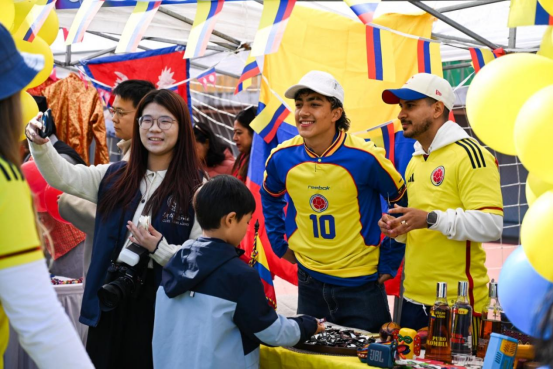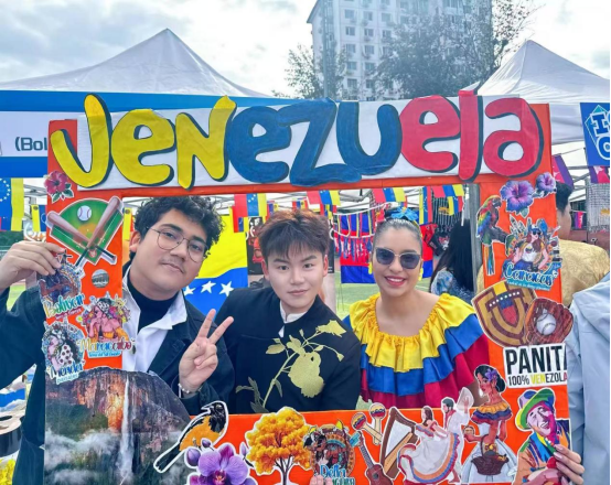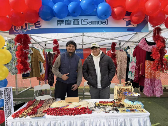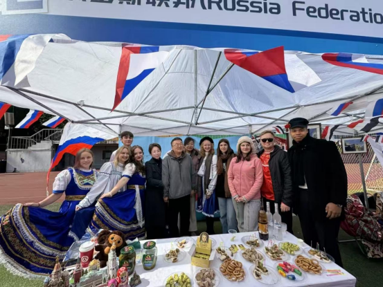 活动现场设有25个国家的特色文化展台,沿操场依次排布,构建出一幅“世界微缩地图”。各展台通过异国美食、传统服饰、手工艺品及互动游戏等形式为参与者带来丰富的跨文化体验,营造出浓厚的国际化氛围。