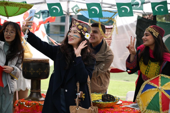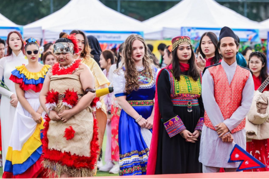 与此同时,留学生工作办公室组织策划了文艺展演环节,各国学生通过歌舞、杂技、现场表演等多种形式展示本国文化风采,呈现了一场跨越国界的视听盛宴。